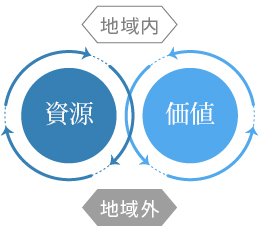 町の基幹産業である農林業の資源を多段階的に活用する新たな産業を創出して、流域内での資源の循環、流域外との価値の循環をはかり、地域の活力を高めていきます。